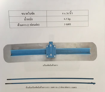 เกรียงขัดมันด้ามยาวสามารถต่อด้าม 2 ท่อน ท่อนละ 1.5 เมตร (ได้ยาวถึง 3 เมตร) ใบขัดขนาด 6 X 36 นิ้ว