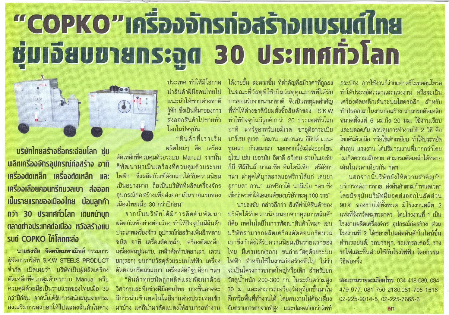หน้าหลัก / ข่าวสาร / COPKO” เครื่องจักรก่อสร้างแบรนด์ไทย ซุ่มเงียบขายกระฉูด 30 ประเทศทั่วโลก / COPKO news1